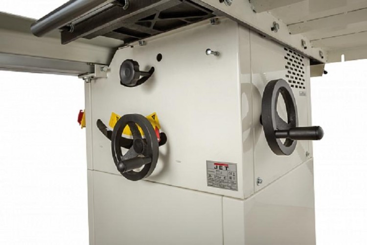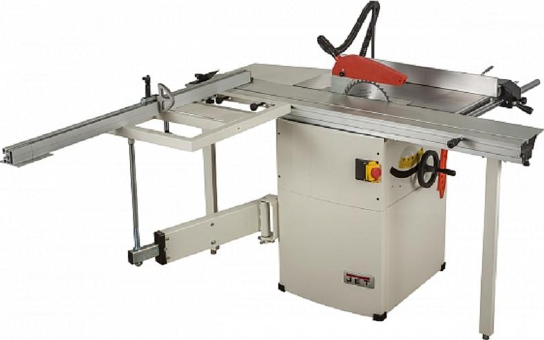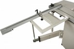 Циркулярная пила Jet JTS-600XL – уникальный по сочетанию характеристик и стоимости станок. Уже в базовый комплект поставки входит подвижный стол (каретка) и расширение к нему. Расширитель укомплектован регулируемой телескопической опорой и торцевым упором заготовки. Торцевой упор выполнен поворотным, что позволяет делать распилы под точно установленным углом. Для фиксации заготовки можно использовать регулируемый концевой ограничитель; в случае ненадобности он откидывается.