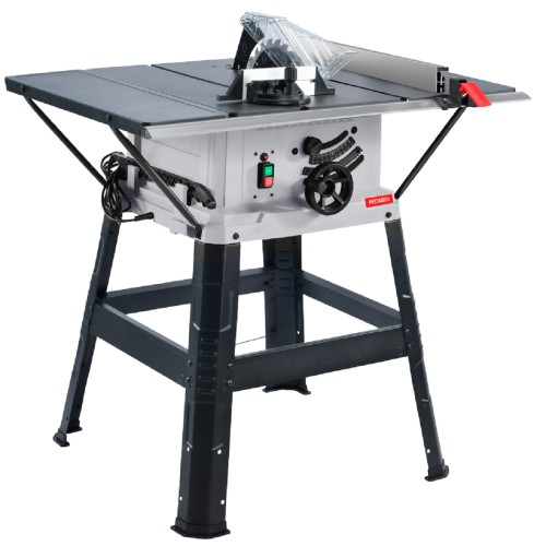 Универсальность использования достигается благодаря возможности наклона пильного диска в диапазоне от 0 до 45°. Большой размер рабочего стола (630 на 935 мм) позволяет комфортно работать с крупным заготовками.