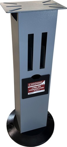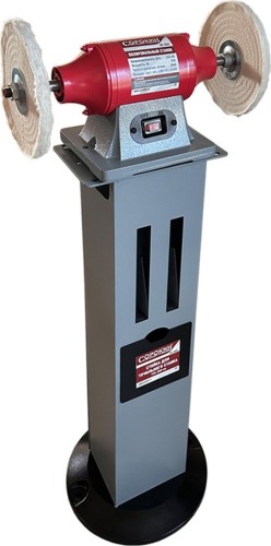 Стойка для точильного станка применяется со станками различных типов в качестве опоры для установки на пол. Стойка имеет опорную чугунную площадку с двумя отверстиями диаметром 12 мм для надежного крепления к полу, ниши для хранения точильных камней и выдвижную ванночку для охлаждения заготовки. Для крепления точильного станка опора снабжена пластиной размерами 280х170 толщиной 4 мм с крепежными пазами шириной 12 мм. Максимальный размер по осям отверстий крепежных проушин станка – 240х245, минимальный – 140х85.