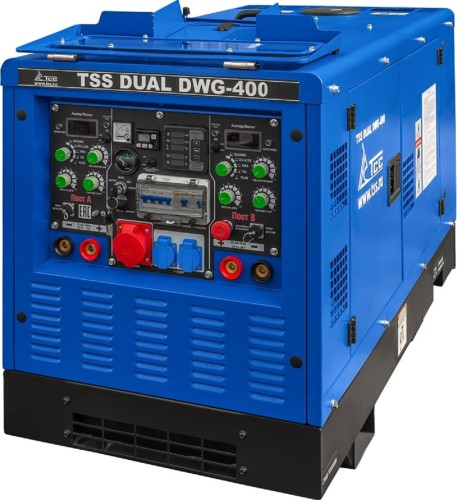 Предназначен для проведения сварочных работ как для одного, так и для двух сварщиков одновременно. Максимальный сварочный ток при однопостовом режиме работы - 400 А. В режиме одновременной работы двух сварщиков сварочный ток каждого поста до 250А с ПВ 60%, 190А с ПВ 100%. Посты полностью независимые и исключают просадку сварочного тока при поджиге дуги вторым сварщиком. 10 часов автономной работы без дозаправки в двухпостовом режиме сварки. Агрегат может использоваться как источник электроэнергии 400В/230В. Номинальная выходная мощность генератора 20 кВт. Двухпостовой дизельный сварочный генератор предназначен для организации сварочных работ в полевых условиях, на стройплощадках и в цехах, где нет возможности применить сварочные аппараты, питающиеся от сети переменного тока. Суммарный сварочный ток 400А. Агрегат может использоваться как источник электроэнергии 400В/230В Номинальная выходная мощность генератора 20 кВт. Сварочный агрегат представляет собой прочную рамную конструкцию, на которой смонтирован дизельный двигатель водяного охлаждения, генератор, сварочный модуль, панель управления и шумозащитный кожух. В раму встроен топливный бак увеличенного размера. Стальной кожух надежно защищает двигатель, генератор, панель управления а также другие детали конструкции от воздействия погодных условий окружающей среды и возможных механических повреждений.