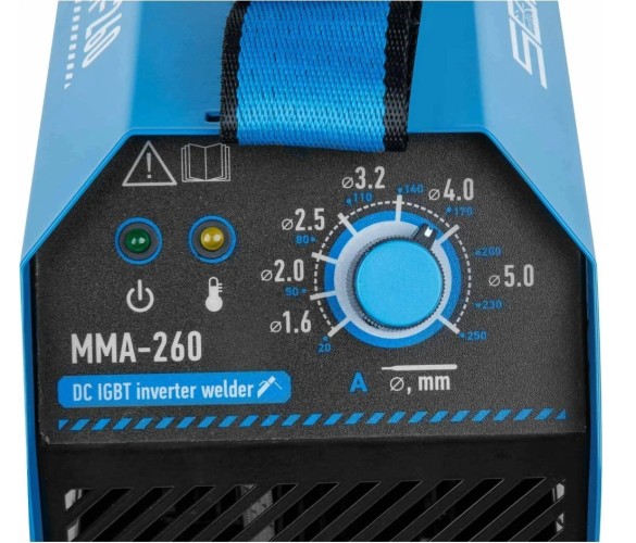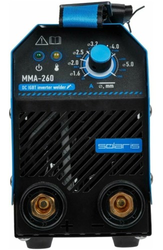 Инвертор сварочный SOLARIS MMA-260 работает на базе 4 штук современных IGBT-транзисторов. Стабильная работа при входном напряжении от 160В. Функции ArcForce, HotStart, AntiStick. Эффективное охлаждение компонентов. Высокий ПВ 70% при 20 °С и 40% при 40 °С. Сварочные кабели 2 + 2 м. Увеличенные сварочные разъемы типа 35-50.
