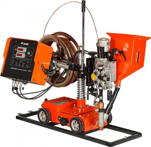Сварочный инвертор СВАРОГ MZ 1000 (M308) представляет собой мощный инверторный источник питания и передвижную каретку, на которую установлены механизм подачи проволоки, 25-ти килограммовая кассета с проволокой, бункер со сварочным флюсом и блок управления. Сварочный инвертор способен выполнять автоматическую сварку под флюсом внахлест, сваривать тавровые, угловые и стыковые соединения.