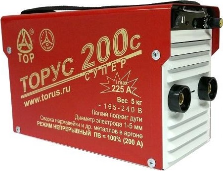 ТОРУС-200с, обладая всеми возможностями и достоинствами аппарата ТОРУС-200, имеет ПВ=100% на максимальном токе в 200 А. Таким образом, можно с уверенностью сказать, что со сварочным аппаратом ТОРУС-200с сварщик может работать полную рабочую смену без перегрева аппарата.