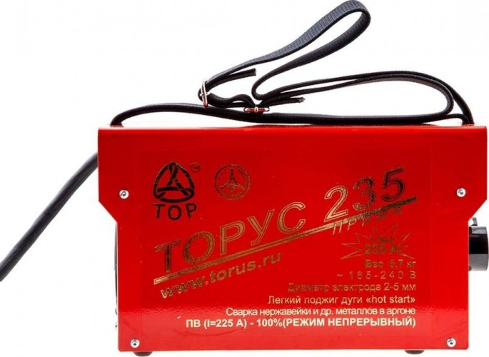 Очень низкая температура тоже не является препятствием для его надежной работы. Понижение напряжения сети до 165 В и менее не станет помехой для работы аппарата и, следовательно, его можно использовать не только на объектах со слабой сетью, но и для работы от бензогенератора . Широкий диапазон сварочного тока, наличие цифрового индикатора тока, максимальный ПВ (процент времени работы), малые габариты и вес аппарата ТОРУС-235 резко выделяют его среди конкурентов.