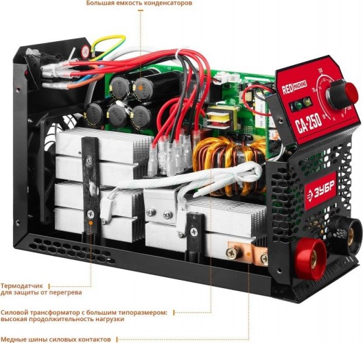 Мощный сварочный аппарат предназначен для ручной электродуговой сварки с применением плавких электродов (ММА). Электронные компоненты и микропроцессорное управление сварочным током обеспечивают малые вес и габариты, стабильность характеристик и оперативное подстраивание к любым условиям процесса сварки: реализация защит, облегчение зажигания дуги, возможность сварки различных материалов различными электродами и т.д.