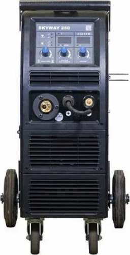 Сварочный полуавтомат AURORA SKYWAY 250 представляет собой однофазный инвертор для полуавтоматической сварки стальной проволокой в среде инертного/активного защитного газа MIG-MAG, а также для ручной дуговой сварки штучным электродом MMA. Аппарат выполнен в едином корпусе со встроенным подающим механизмом, рассчитанным для использования катушек D300 (до 20кг).