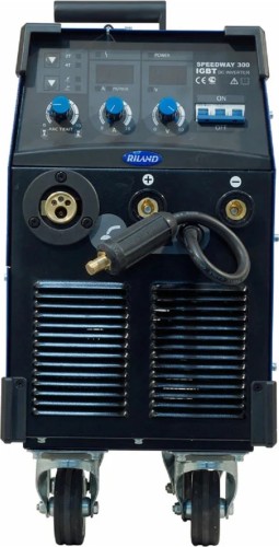 SPEEDWAY 300 - трехфазный аппарат для полуавтоматической сварки стальной проволокой в среде инертного/активного защитного газа MIG-MAG, а также для ручной дуговой сварки штучным электродом MMA. Благодаря продолжительному режиму работы на максимальных токах и возможности установки большой бобины D300, аппарат прекрасно подходит для работы на производстве, равно как и в профессиональном автосервисе. Удобный интерфейс управления всеми параметрами сварки на лицевой панели позволит настроить полуавтомат для выполнения широкого спектра сварочных работ на высшем уровне.