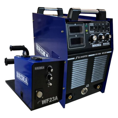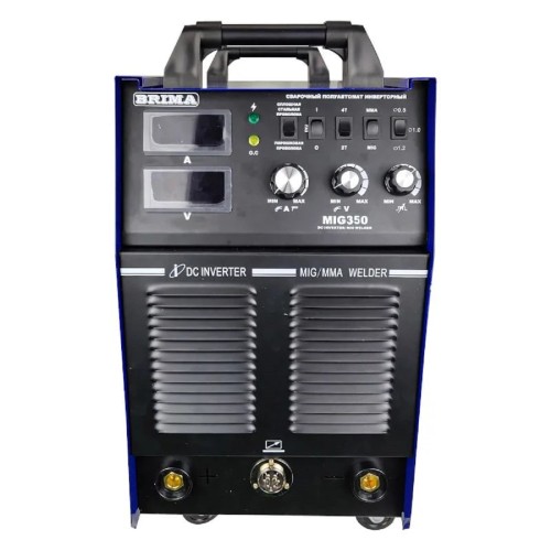 Инверторный сварочный полуавтомат Brima MIG-350 380В 0006658 предназначен для выполнения жестких, неразъемных соединений металлов и сплавов разного рода. Данный агрегат отличается большим диапазоном сварочного тока от 50 до 350 А, что дает возможность подобрать нужный ток для определенной марки и толщины стали. Катушка с проволокой находится с внешней стороны, это позволяет без проблем производить замену.