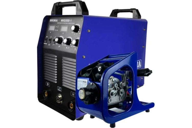 Инверторный сварочный полуавтомат Brima MIG-500-1 WF4 380В 00000007545 является сварочным инверторным полуавтоматом, предназначенным для сварки сварочной проволокой в защитных газах различных металлов, в первую очередь углеродистые и легированные стали. В качестве защитных газов используются активные газы (углекислый газ, газовая смесь) при сварке MAG, которые принимают участие в формировании сварного соединения, и инертные – при сварке MIG (аргон, гелий), которые не вступают в химическое взаимодействие с металлами и практически не растворяются в них.