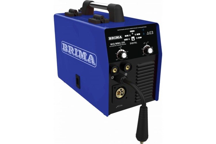 Полуавтомат BRIMA MIG/MMA-200 DIGITAL НП000000287 – является цифровым инверторным аппаратом нового поколения для сварки проволокой в защитных газах (данный способ сварки в соответствии с ИСО 4063-90 имеет следующее сокращение – MIG Metal Inert Gas, MAG Metal Active Gas). Данный аппарат применяется в современных сварочных цехах при сварке углеродистых и легированных сталей. В качестве защитных газов используются активные газы (углекислый газ, газовая смесь) при сварке MAG, которые принимают участие в формировании сварного соединения, и инертные – при сварке MIG (аргон, гелий), которые не вступают в химическое взаимодействие с металлами и практически не растворяются в них.