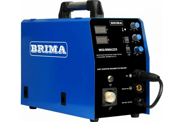 Полуавтомат Brima MIG/MМА-225 220В с горелкой НП000000922 - это надежный, современный и удобный аппарат, поддерживающий такие режимы сварки, как MIG/MAG, сварка в среде защитных газов или без (возможность сварки порошковой самозащитной проволокой). Является среди подобных аппаратов один из самых экономичных за счет использования сварочной проволоки на катушках по 15 кг.