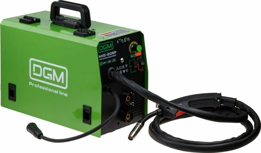 Аппарат построен с использованием IGBT-транзисторов; имеет защиту от перегрева, перегрузки. Оснащен встроенной горелкой MIG 2 метра и возможностью смены полярности для сварки проволокой без газа (FLUX).