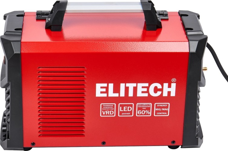 Сварочный инвертор ELITECH АИС 220 СИН ЖК MIG/MAG - предназначен для сварки стали (углеродистой и нержавеющей) на постоянном токе методом полуавтоматической сварки (MIG/MAG) проволокой в среде защитного газа и проволокой с покрытием (FLUX), методом аргонодуговой сварки неплавящимся вольфрамовым электродом и присадочным прутком в среде инертного защитного газа - аргона, а также методом электродуговой сварки (ММА) штучным покрытым электродом. Оснащен евроразъемом MIG/MAG и двумя клеммами Dх25.