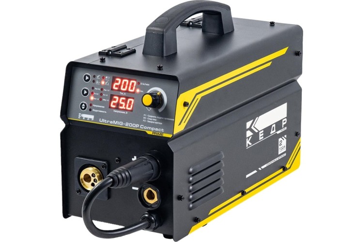 Полуавтомат КЕДР UltraMIG-200P Compact - идеально подходит для сварки на малых предприятиях, автомастерских и бытового использования. Имеет малый вес, прочный металлический корпус и эргономическую панель управления.