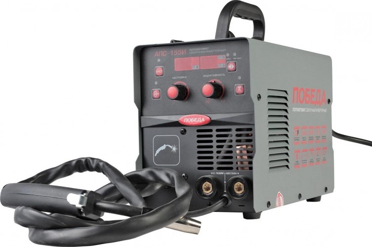 Полуавтомат сварочный АПС 155 И для работы проволокой в среде газа (MIG / MAG) и проволокой с флюсовым покрытием (Flux), а также методом электродуговой сварки (ММА).
