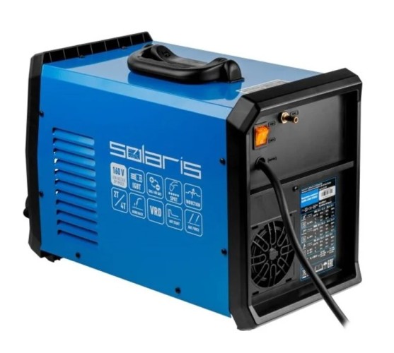SOLARIS ALUMIG-230DP обладает высокой продолжительностью включения, составляющей 60% при температуре окружающей среды 20 градусов Цельсия. Функции горячего старта, форсажа дуги, антиприлипания и безопасного напряжения холостого хода обеспечивают комфорт и безопасность работы.