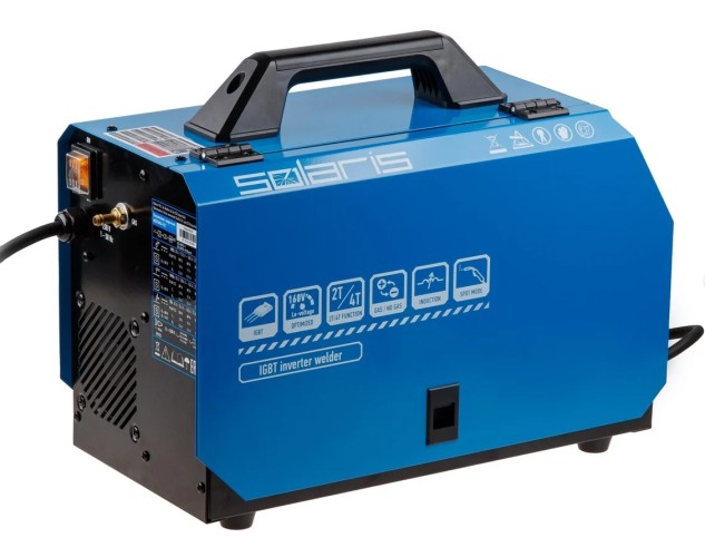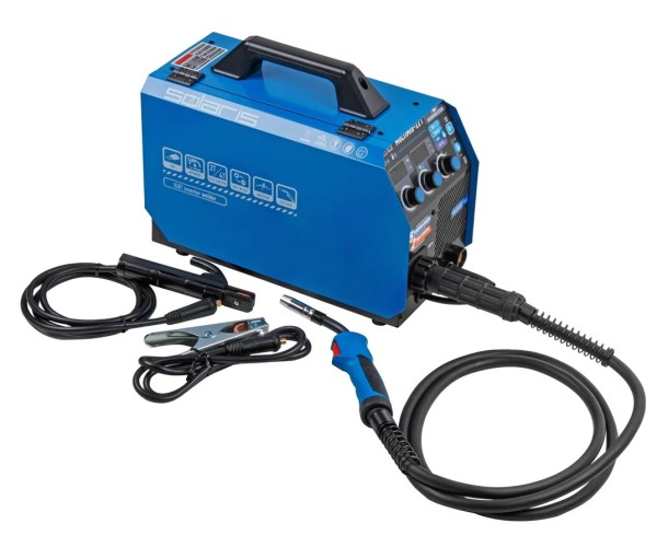 Аппарат оснащен ЕВРО-разъемом, горелкой MIG 3 метра и возможностью смены полярности для сварки проволокой без газа (FLUX).