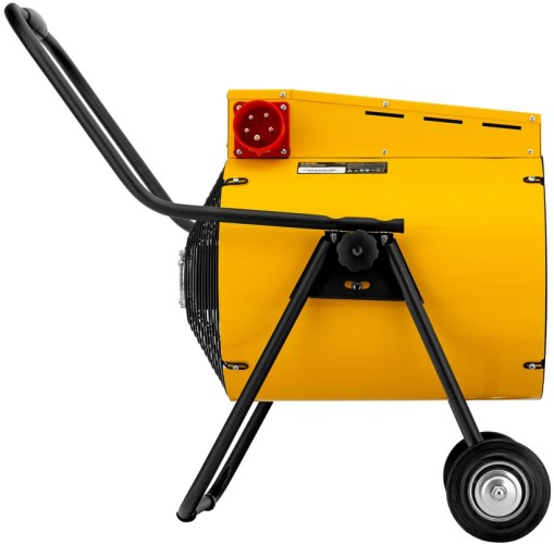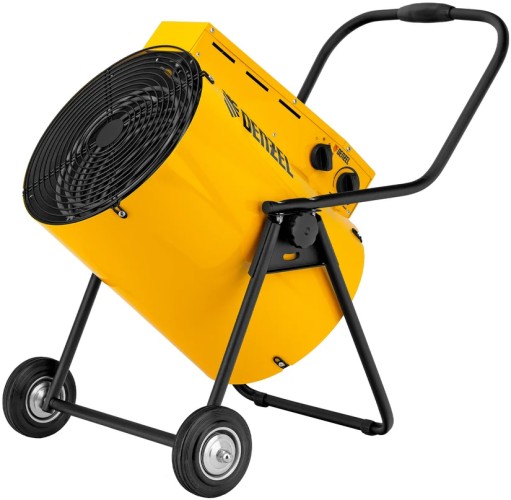 Производительная тепловая пушка Denzel SFH 15000 с самой максимальной мощностью в линейке создана для профессионального применения на стройке, в ангарах, теплицах, сервисных центрах, гаражах и мастерских. Пушка имеет двойные стенки корпуса, что предотвращает возможность получения ожогов, а вентилятор увеличенного размера создает мощный воздушный поток, благодаря которому существенно сокращается время на просушку различных объектов. На корпусе размещён блок управления с двумя регуляторами. Одним устанавливается режим работы: вентиляция, обогрев 9000 Вт, обогрев 15000 Вт, вторым – желаемую температуру, которую необходимо поддерживать в помещении (используется встроенный биметаллический термостат). Подставка и ручка выполнены из изогнутой стальной трубки, на которой закреплены резиновые не скользящие опоры, рукоятка для перемещения пушек и транспортировочные колеса.