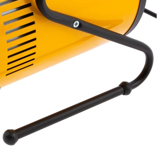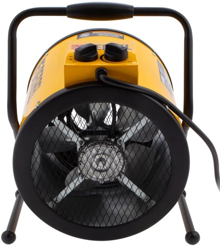 Производительная тепловая пушка Denzel SFH 9000 высокой мощности для профессионального применения на стройке, в гаражах и мастерских. Пушка имеет двойные стенки корпуса, что предотвращает возможность получения ожогов, а вентилятор увеличенного размера создает мощный воздушный поток, благодаря которому существенно сокращается время на просушку различных объектов. На корпусе размещён блок управления с двумя регуляторами. Одним устанавливается режим работы: вентиляция, обогрев 6000 Вт, обогрев 9000 Вт, вторым – желаемую температуру, которую необходимо поддерживать в помещении (используется встроенный биметаллический термостат). Подставка и ручка выполнены из изогнутой стальной трубки, на которой закреплены резиновые не скользящие опоры и рукоятка для перемещения пушек.