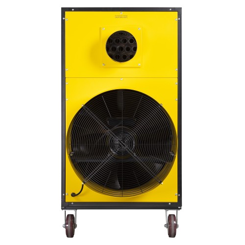В результате сгорания дизельного топлива вырабатывается тепло, которое через металлические стенки камеры сгорания и широкого теплообменника передается воздуху, втягиваемому вентилятором производительностью 14000 м3/ч. Нагретый воздух выбрасывается наружу через выпускную трубу, а дым с продуктами сгорания выводятся через отверстие дымохода.