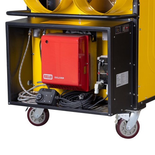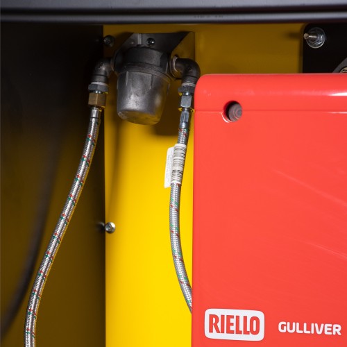 Теплогенераторы укомплектованы одноступенчатой горелкой Riello Gulliver, оснащенные системой контроля пламени с фотоэлементом для отключения работы в случае отсутствия горения. Также приборы имеют многоуровневую систему безопасности, которая отключает работу в случае срабатывания регулировочных термостатов, возникновения аварийной ситуации.
