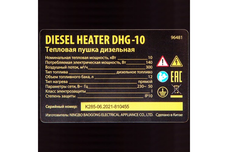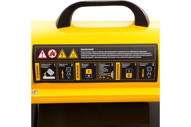 Дизельная тепловая пушка Denzel DHG-10 предназначена для прямого нагрева воздуха в цехах, ангарах, хранилищах и других нежилых помещениях с хорошей вентиляцией. Пушка служит эффективным источником тепла в полярных экспедициях. Пригодится также на строительной площадке для прогрева бетона, просушки стен и разморозки траншей.