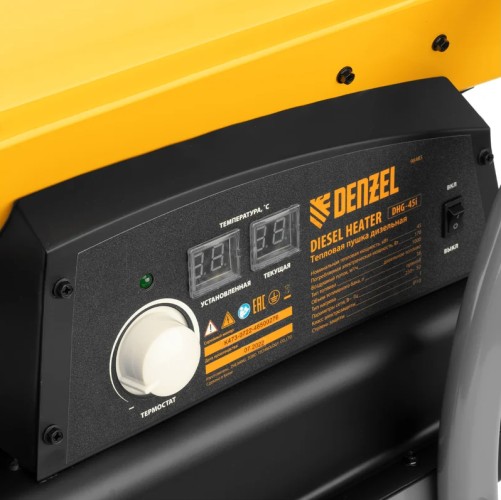 Дизельная тепловая пушка Denzel DHG-45i предназначена для прямого нагрева воздуха в цехах, ангарах, хранилищах и других нежилых помещениях с хорошей вентиляцией. Пушка служит эффективным источником тепла в полярных экспедициях. Пригодится также на строительной площадке для прогрева бетона, просушки стен и разморозки траншей.