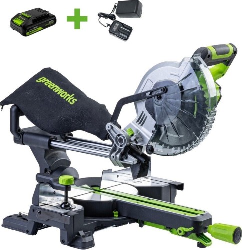 Мобильная и производительная аккумуляторная торцовочная пила Greenworks GD24MS216 с функцией протяжки – лёгкая, точная и максимально удобная в эксплуатации.