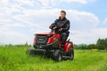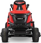 Входящая в комплект поставки задняя сцепка дает возможность работы машины с различным прицепным оборудованием: прицепами, газонными катками, разбрасывателями семян, аэраторами и др., что наделяет ее функциями трактора. Трактор приводится в действие мощным бензиновым двухцилиндровым двигателем Briggs&Stratton 2000 EXi с чугунной гильзой цилиндра и системой смазки под давлением, повышающими моторесурс и позволяющими работать машине целую рабочую смену. В тракторе применена автоматическая бесступенчатая гидротрансмиссия без необходимости переключения передач. Двигатель и трансмиссия обеспечивают движение вперед со скоростью до 8,8 км/ч и движение назад со скоростью до 4,5 км/ч.
