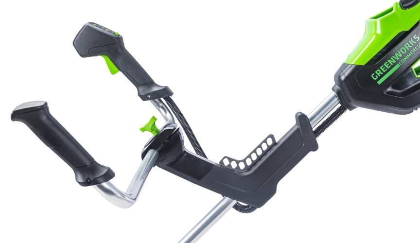 Велосипедная рукоятка триммера и, входящий в комплект ранцевый ремень, оптимальны для продолжительной эффективной работы на больших площадях.