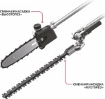 Аккумуляторный садовый многофункциональный инструмент - незаменимый помощник на садовом участке. Благодаря сменным насадкам различного назначения поможет ухаживать за газоном и скосить густую траву с помощью насадки ""триммер"", привести в порядок и придать желаемую форму декоративным кустам или живой изгороди с насадкой ""кусторез"", а с насадкой ""цепная пила"" поможет обрезать высоко расположенные ветки на деревьях.