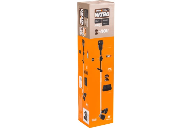 Аккумуляторный триммер WORX WG185E – это эффективное решение для обработки прилегающей территории или небольшого сада. Сердце триммера – мощный бесщёточный двигатель на 40В, для чего используются две батареи PowerShare 20B. Вес устройства с аккумуляторными батареями составляет 4,27 кг. Полуавтоматическая система подачи лески значительно ускоряет обработку участка и экономит время. Ширина обработки режущей системы – 38 см. Головка триммера имеет двухсторонний вывод и полуавтоматическую подачу лески толщиной 2,4 мм. Благодаря отсутствию щеток в двигателе, WG185E стал еще тише и производительней аналогов. Бесщеточный двигатель не требует обслуживания и отличается длительным сроком службы. Двойной заряд и его контроль. Триммер имеет батарейный отсек сразу для 2-х аккумуляторов, что существенно увеличивает мощность и время автономной работы. Для контроля за состоянием батарей предусмотрен светодиодный индикатор. Универсальные аккумуляторы PowerShare 20В совместимы с другими инструментами WORX.