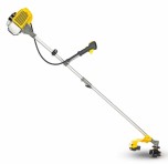 Устройство безопасно в использовании. От летящей травы и различных мелких предметов пользователя уберегает особый кожух. Он имеет ограничитель длины лески. Триммер такой модели отличается грамотно сбалансированной конструкцией. Установлен надежный мотор. Есть опцию, которая облегчает его запуск. Гарантией длительного срока службы изделия является воздушное охлаждение.