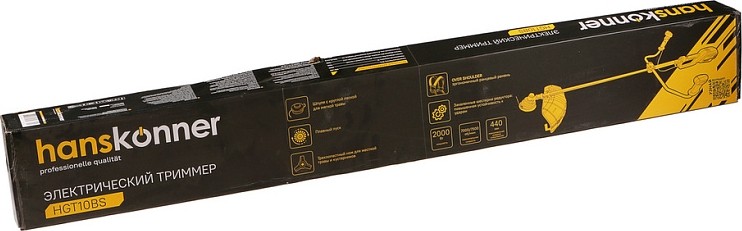 Триммер электрический HANSKONNER HGT10BS оснащен достаточно мощным электрическим двигателем который позволяет скашивать траву и сорняки. В качестве режущего элемента можно использовать леску или нож.