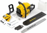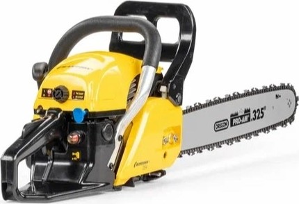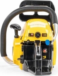 Благодаря компактным размерам и небольшому весу модель отличается маневренностью, что позволяет использовать ее в самых сложных операциях. Для обеспечения высокой производительности цепная бензопила Champion 254-18 имеет двухтактный мотор с хромированным цилиндром объемом 54 см3. Его мощность в 3.3 л.с. удовлетворит самого требовательного специалиста. Для большей прочности картер двигателя выполнен из металла, что особо важно для данного типа двигателя, ведь в картере происходит подготовка топливной смеси. Включение двигателя осуществляется при помощи пускового тросика, процедура достаточно проста благодаря наличию праймера.