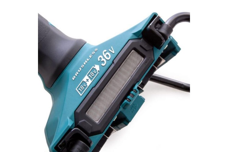 Модель работает от двух аккумуляторов напряжением по 18 В.