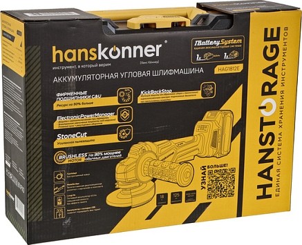 Независимая от наличия электросети, легкая и компактная аккумуляторная УШМ Hanskonner HAG1812E позволяет справиться с работой практически в любой ситуации.
