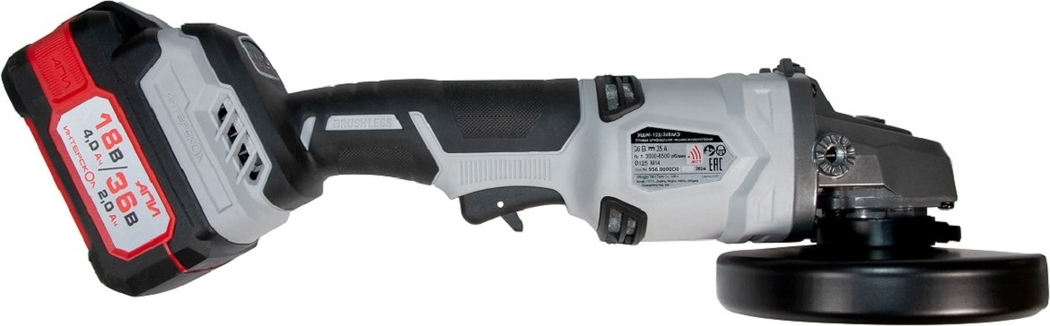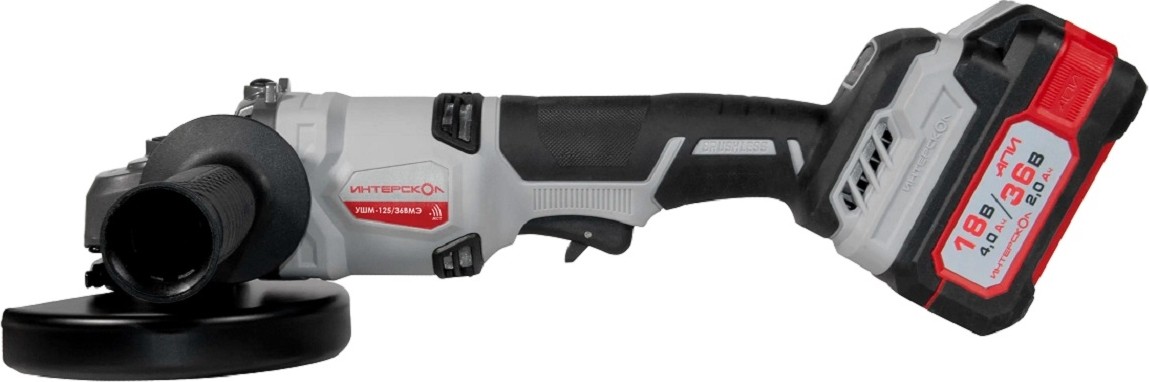 Угловая шлифмашина аккумуляторная ИНТЕРСКОЛ УШМ-125/36ВМЭ бесщеточная 2 АКБ 2,0 Ач, ЗУ