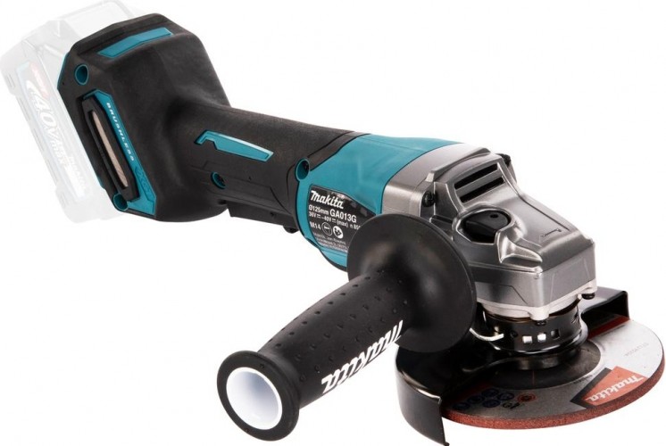 MAKITA GA013GZ - мощная угловая шлифмашина с бесщеточным двигателем для продолжительной тяжелой работы с широкой клавишей включения для безопасной работы без блокировки.Превосходная производительность и эффективность, аналогично сетевой УШМ мощностью 1100 Вт. При резке кирпичной кладки максимальная выходная мощность на 40% выше, чем у серии DGA504. Технология AFT отключает двигатель при заклинивании диска или рывках. Функция AWS для беспроводного подключения пылесоса. Увеличенные шарикоподшипники и новый переключатель с уменьшенным износом контактов. Новый кожух не требует инструментов и позволяет быстро и легко регулировать положение.