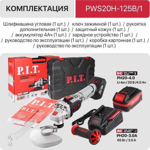 Аккумуляторная угловая шлифмашина PWS20H-125B/1 входит в семейство инструментов единой аккумуляторной системы OnePower20V. К инструменту подходят все аккумуляторы системы OnePower20V