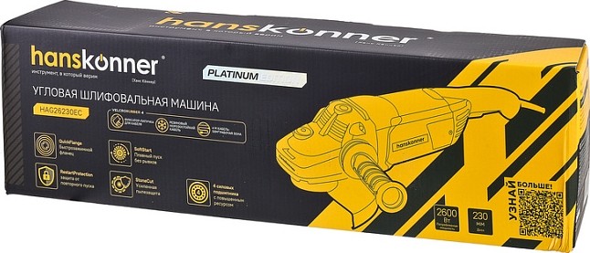 Угловая шлифовальная машина Hanskonner HAG26230EС — мощный и маневренный электроинструмент для шлифования и зачистки поверхностей, а также резки металлов, кирпича, керамики или камня без использования воды. Данная модель отлична быстрозажимным фланцем, что облегчает замену отрезных и шлифовальных дисков. Основательная пыле-защищенность и плавный пуск, снижающий динамические нагрузки при запуске ушм, способствуют долговечности инструмента. Также приросту эксплуатационной надежности содействуют силовые подшипники повышенного ресурса.