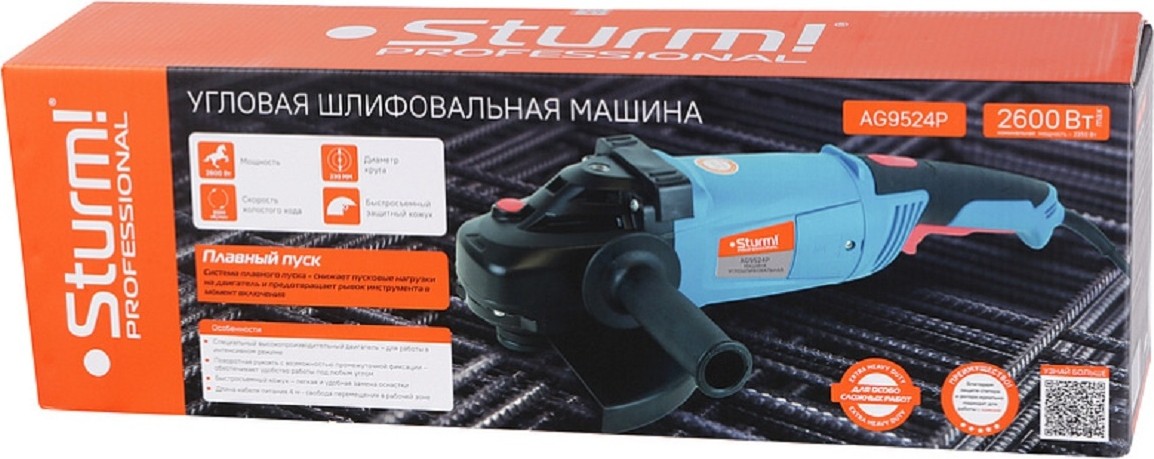 Угловая шлифмашина сетевая STURM AG9524P эффективен при резке, зачистке, шлифовке поверхностей изделий из металла, керамической плитки, кирпича. Пониженный уровень вибрации благодаря применению демпфирующего стакана заднего подшипника.