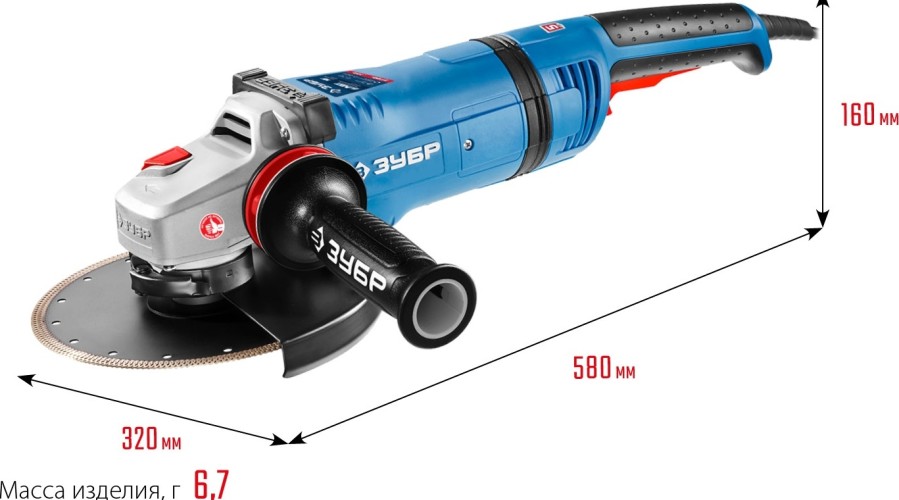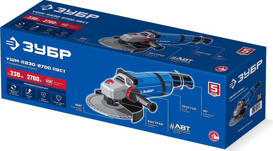 Угловая шлифмашина сетевая ЗУБР УШМ-П230-2700ПВСТ Профессионал