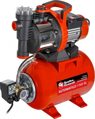 Насосная станция Automatico 1101FL, может применяться для снабжения загородных домов и коттеджей, а также для увеличения давления воды в сетях с низким давлением. Насосная станция обеспечивает автоматическую, бесперебойную подачу чистой воды. Automatico 1101FL обладает впечатляющей производительностью в 4200 л\ч, однако в конструкции применены элементы из нержавеющих сталей и пластика, за счет чего масса станции составляет всего 15,4 кг. Данная станция обладает защитой от сухого пуска, которая обеспечивает выключение двигателя когда отсутствует источник воды, тем самым продлевая его ресурс.
