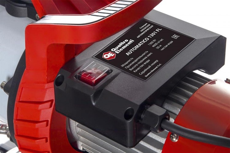Насосная станция QUATTRO ELEMENTI AUTOMATICO 1300 FL INOX может повышать давление подаваемой воды. Принцип ее работы следующий - с помощью манометра определяем давление в воздушной камере гидроаккумулятора, если давление ниже 1,5 бар, нужно подкачать воздух любым насосом. Включаем насос. Происходит закачка воды в гидроаккумулятор до заданного давления, после этого реле отключает станцию. Теперь можно пользоваться водопроводом. Как только давление упадет до минимального, станция автоматически включится и снова начнется цикл работы.