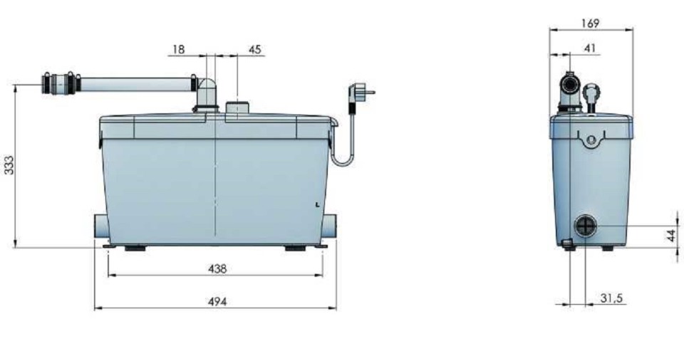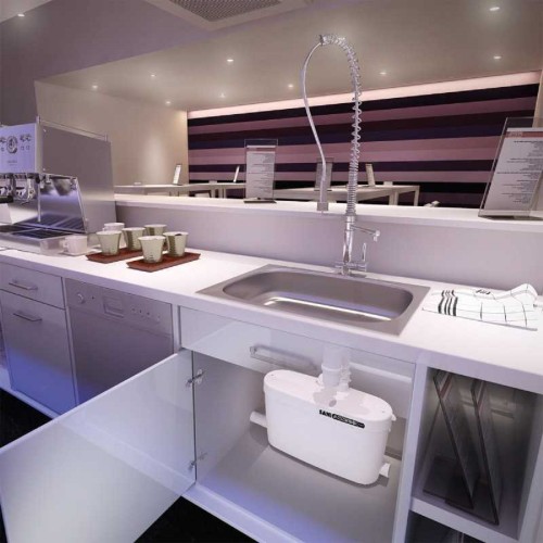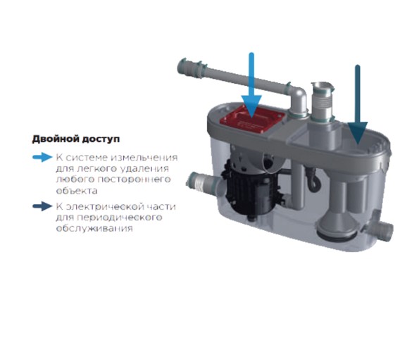 Установка канализационная SFA SANIACCESS PUMP откачивает грязные стоки до 5 м по вертикали и до 50 м по горизонтали. Главная особенность данного кухонного насоса в наличии двух люков для быстрого доступа в резервуар и к электрическим компонентам. Откачивание всех стоков данным санитарным насосом происходит по принципу принудительной напорной канализации по тонкой напорной трубе диаметром 32 мм.