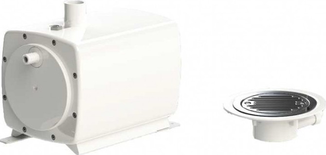 Состоит из всасывающего насоса и специального трапа для облицовки плиткой или гибким покрытием. Позволяет установить современный душ без порога и поддона в любом месте без гравитационной канализации — идеально для ванных комнат, мансард, подвалов или перепланировок.