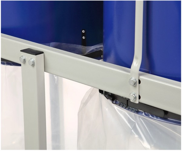 Монтаж/демонтаж фильтр-мешков и мешков-стружкосборников не требует ни специального инструмента, ни большого количества времени, благодаря специальным зажимам. Фильтр-мешки очищаются без снятия, путем стряхивания пыли внутрь. Уровень очистки составляет 5 мкм, этого достаточно для работы не только с распиловочными и строгальными станками, но и с оборудованием, дающие мелкую взвесь – шлифовальными, фрезерными, рейсмусовыми станками. Три вместительных стружкосборника, объемом по 160 литров каждый, способствуют длительной работе без их частой смены.