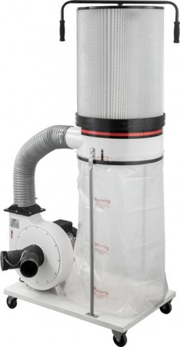 Модель оборудована 2-микронным фильтрующим картриджем из гофрокартона, который обеспечивает качественную очистку отходящего воздуха, что особенно актуально при работе со шлифовальными станками, производящими мелкую пыль, вредную для здоровья. Очистка производится без демонтажа методом стряхивания: при проворачивании рукоятки специальная лопасть внутри сбивает отложения со складок картона. Изредка производят продувку сжатым воздухом.