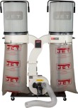 JET DC-2300СК-T — высокопроизводительная вытяжная установка с двумя ёмкостями для мусора, способная обслуживать до трех деревообрабатывающих станков одновременно Укомплектована мощным надежным двигателем, подходящим для продолжительного режима эксплуатации, «улиткой» и крыльчаткой из стали, которые не повреждаются при прохождении сучков и щепок. Для подключения рукавов предусмотрено три патрубка диаметром 100 мм; если разветвитель снять, то можно подключить один рукав большого (150 мм) диаметра.